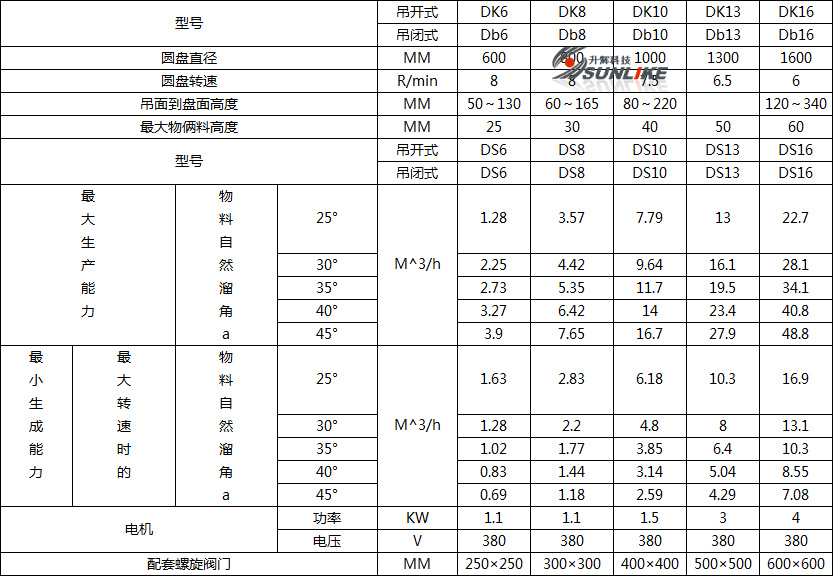 DK 、 DB 、 PZ 型圓盤給料機(jī)主要性能參數(shù)表
