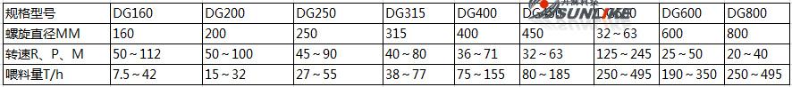 DG 、 LE 型單雙管螺旋喂料機(jī)主要性能參數(shù)表