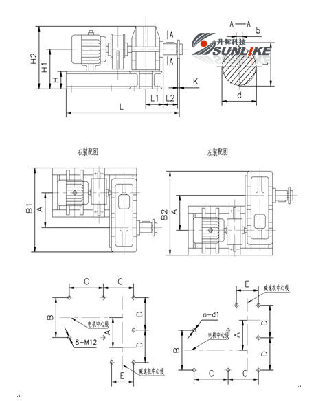 一臺螺旋機通常按驅動裝置、頭節(jié)、若干標準中間節(jié),選配中間節(jié),尾節(jié)順序組成,除頭節(jié)機殼和選配節(jié)外,各節(jié)螺旋及機殼均具有互換性,在出料端螺旋有清料裝置,安裝時注意位置。 驅動裝置由一臺行星擺線針輪減速電機(或JTC減速機)或選用JZQ型減速機承擔,在頭節(jié)前部裝有止推軸承,可承受移動物料時而產(chǎn)生的軸向力,頭節(jié)機殼內(nèi)設吊軸承及底座,每一中間節(jié)安有一只吊軸承用以支撐螺旋軸,吊軸承內(nèi)裝有向心球軸承(或整體滑動軸承),在尾節(jié)后部裝有滾動(滑動)軸承用以支撐螺旋和補充螺旋長度的誤差,安裝時應從頭部開始,順序進行。 在總體布置時還應注意,不要使底座和出料口布置在機殼接頭的法蘭處,進料口也不應布置在吊軸承的上方,如果因為開出料口影響底座而安排不能遵循本原則時,使用單位應繪制螺旋機總圖。 四、減速機選用JZQ型的驅動裝置