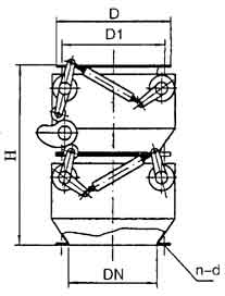 | DN | D1 | D | H | H1 | L | n-d | 卸灰能力m3/h | 傳動(dòng)裝置型號(hào) | 開閉頻率次/min | 功率kw |