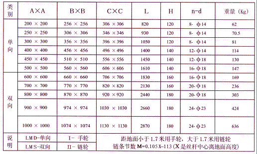 手動(dòng)單、雙向平板閘閥門主要由框架、絲桿螺母、手輪、鏈輪,手輪(鏈輪)轉(zhuǎn)動(dòng),絲桿帶著絲桿螺母和閘板作水平方向的往復(fù)運(yùn)動(dòng),達(dá)到閥門的啟閉目的。