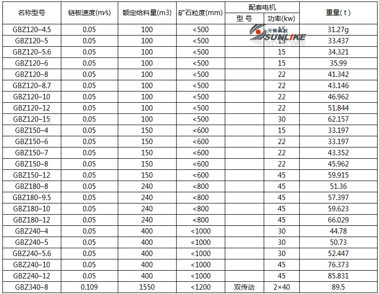 GBZ型重型板式給料機(jī)技術(shù)參數(shù):